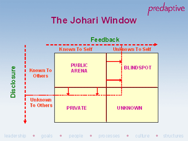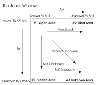 การรู้จักตนเองในแบบหน้าต่างหัวใจ ( JOHARI WINDOW )เป็นแนวคิดของนักจิตวิทยาคือ Joseph Luft และ Hary Ingham ได้คิดกระบวนการรู้จักตนเองและพัฒนาตนเองในรูปของหน้าต่างหัวใจที่เรียกว่า JOHARI WINDOW เราสามารถทำความรู้จักกับตัวเองให้มากขึ้น โดยให้คนอื่นๆ บอกจุดบอดของเราเพื่อเราจะได้ปรับปรุง ดังรูปที่ 3