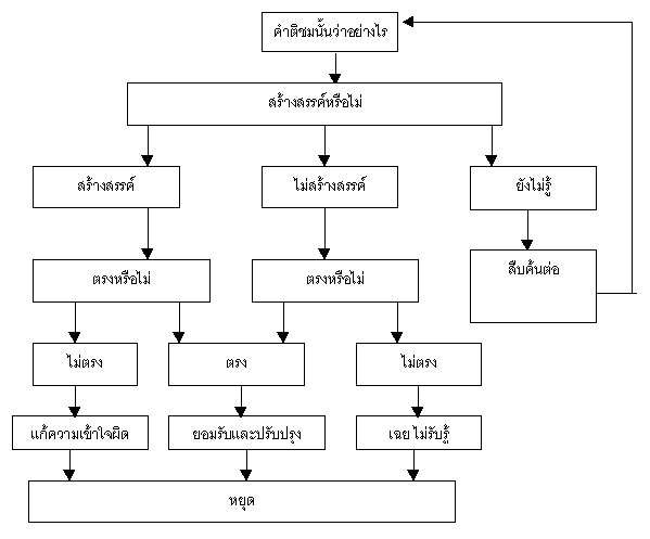 เมื่อได้รับรู้คำติชม อย่างแรกที่ต้องทำ คือ พิจารณาว่าคำติชมนั้นเป็นเรื่องอะไร เป็นเชิง สร้างสรรค์หรือไม่ ถ้าหากคำติชมเป็นไปใน เชิงสร้าง สรรค์ ให้พิจารณาต่อว่าตรงหรือไม่ หากไม่ตรงก็ให้แก้ความเข้าใจให้ถูกต้อง แต่หากตรงก็ให้ยอมรับและแก้ไขปรับปรุง ในกรณีที่คำติชม ไม่สร้างสรรค์ แต่ตรงก็ควรจะยอมรับและปรับปรุงแก้ไขเช่นกัน แต่หากไม่ตรงก็ไม่มีประโยชน์ที่จะเสียเวลาไปใส่ใจ ส่วนในกรณีที่ฟังแล้ว ไม่แน่ใจ หากยังคิดว่าสำคัญก็สืบค้นต่อจนเข้าใจชัดเจน แล้วจึงทำเหมือนข้างต้น