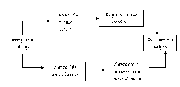 ทั้งนี้ เพราะภาวะผู้นำแบบนี้จะช่วยเสริมความมั่นใจ ลดความวิตกกังวล และทำให้ความไม่ชอบงานน้อยลง